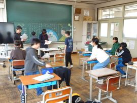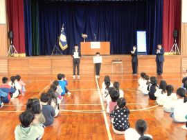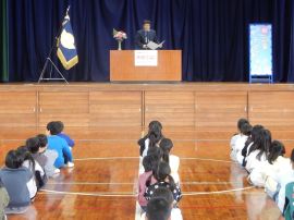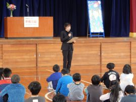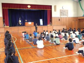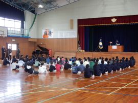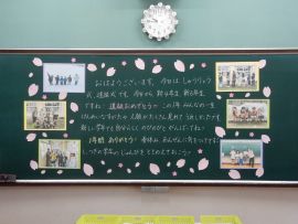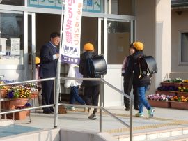 「私のあいさつは、皆さんに伝わっていますか?皆さんのあいさつは、相手に伝わっていますか?4月から新しい一年が始まります。皆さんの元気なあいさつで、家族が、地域の人たちが、みんなが幸せになることを願って修了式の式辞とします。」