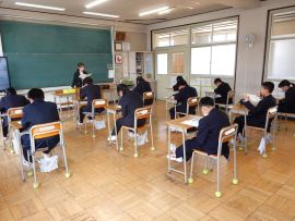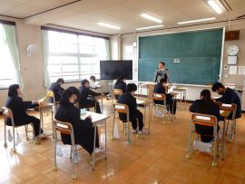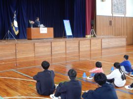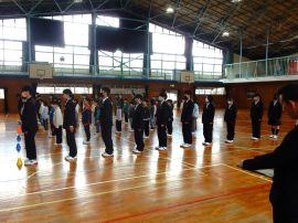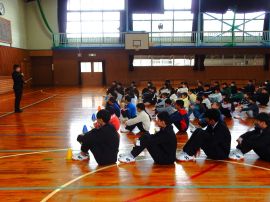 生徒指導部長からは、「1年前を比べて、たくさんの成長がありました。『あいさつ』『時間を守る』『人を傷付けない』など、当たり前のことを当たり前にできるようになりました。春休みは、自注な時間が増えますが、自分を律する力が試されます。交通事故などに気を付け、自分の命を大切にしてください。困ったことがあれば、先生や保護者に相談をしてください。」と話しました。