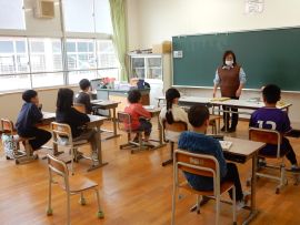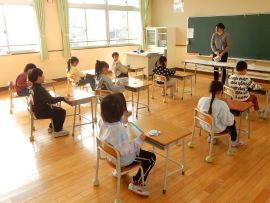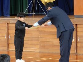 続いて進級式を行いました。校長から学年順に進級認定が告げられ、子どもたちは、新年度に向けて気持ちを新たにしていました。