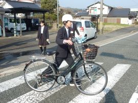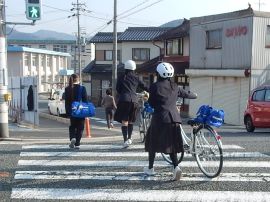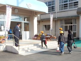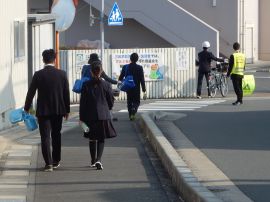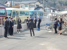朝、児童生徒が三和学園へ登校してきました。3月に卒業した元9年生、元6年生も、スクールバス、自転車等、様々な方法で登校してきました。