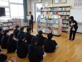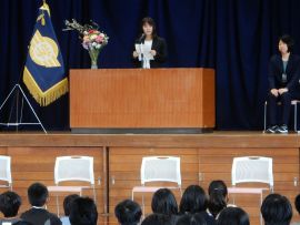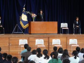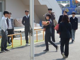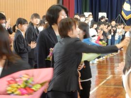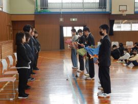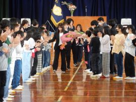 続いて、児童会・生徒会の代表がお礼の言葉を述べ、花束や寄せ書きの贈呈を行いました。