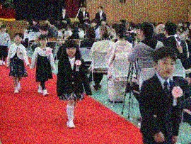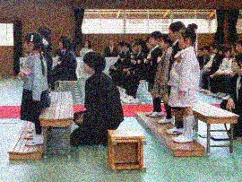 いよいよ入学式が始まりました。担任を先頭に7年生、1年生の順に入場し、校長から入学認定を受け、正式に三和学園の一員となりました。