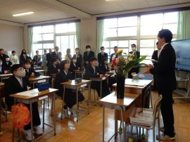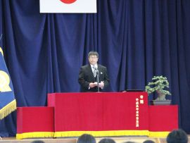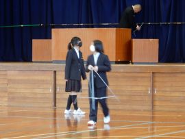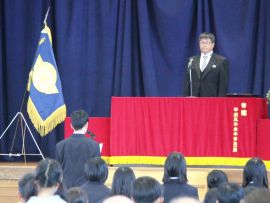 新7年生に対しては、「中学生になると、定期テストや部活動など、新たな生活が始まります。学習では、教科ごとに先生が変わり、勉強のレベルも上がります。3年後の進路実現を目指し、毎日の学習の積み重ねを大切にして、授業や家庭学習に励んでください。部活動では、技術の向上はもちろんのこと、礼儀や感謝する気持ちも大切にして取り組んでいます。部活動を通して、楽しみながら仲間と協力して目標を達成する力を付けていきましょう。」と、中学部での生活への希望を抱かせる言葉を伝えました。