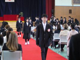 校長式辞や来賓祝辞を良い姿勢で聞くことができた7年生でした。1年生も、少し難しい言葉があってもがんばって聞いていました。