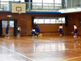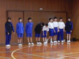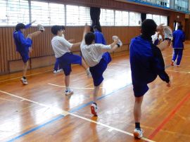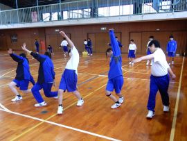 中学部の体操服を着て、誰もが気を引き締めて臨んでいました。一礼をしてから練習場へ入ると、始めのあいさつからウォーミング・アップ、基礎練習、技術練習、終わりのあいさつまで、一通りを行いました。