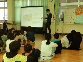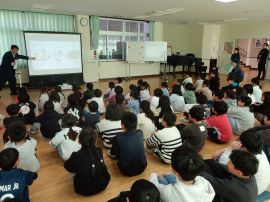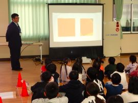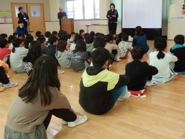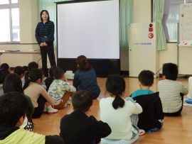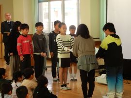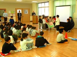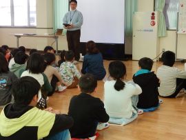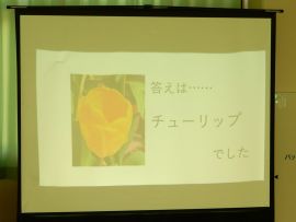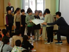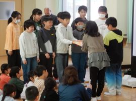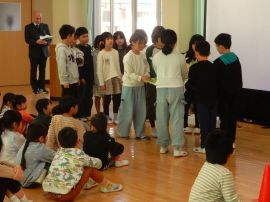 校長からは、青空学級の児童へ「チューリップは、なぜきれいな花を咲かせるのか?その理由は、球根が冬の間に栄養を蓄えるからです。青空学級の子どもたちも同じで、しっかり力を付けることで、いろいろな目標が達成できるです。また、花には、いろいろな色があります。一人一人違った色の花を咲かせてほしいです。」と話しました。
