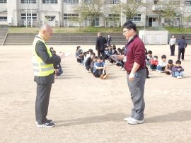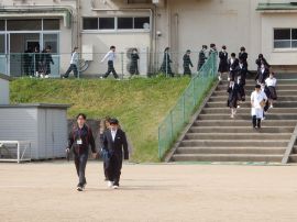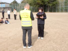 各担任から教頭へ、教頭から副校長へと避難完了の報告を行いました。避難報告まで4分で完了しました。