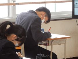 一人一人きちんと振り返り、用紙に記入していました。こうした振り返りが、いつ起こるか分からない災害への心の備えにつながります。