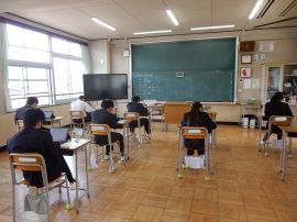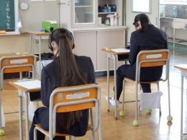 生徒たちは、問題や質問を注意深く読んだり聞いたりして、当てはまる番号や、自分の考えに最も近い番号を選んでいました。