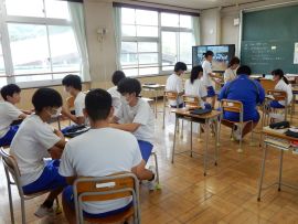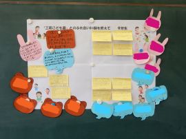 三和学園に戻ってから、各グループで交流を振り返りました。「話してくれなかったらどうしようと思っていたけど、たくさん来てくれて、話してくれた。」という言葉が聞かれました。皆、満足のいく交流ができたことを喜んでいました。