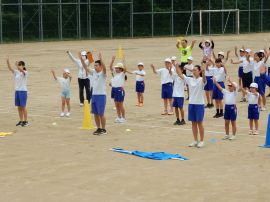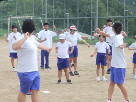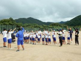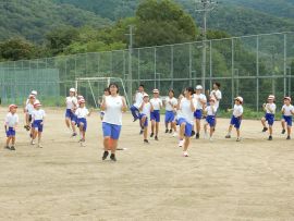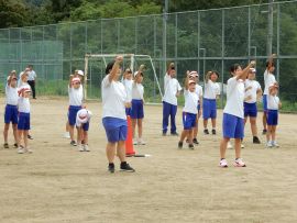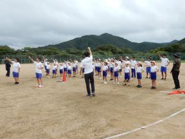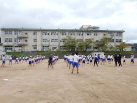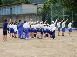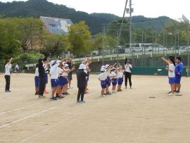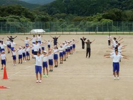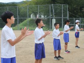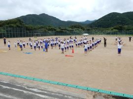 まずは、三和アップ体操です。保健体育委員会の9月のキャンペーンにより、各学級で練習していますす。この日が、全校児童生徒で行う初めての三和アップ体操でしたが、各学級での練習の成果をうかがうことができました。