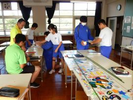 9月19日(金)に、体育祭に向けた小中合同委員会を行いました。5~9年生が、総務部(生徒会本部役員)、広報部(広報委員会)、競技部(文化委員会)、種目部(保健体育委員会)、用具部(生活委員会)、記録・掲示部(学級委員会)に分かれて、前日までの動き・役割確認、予行練習での役割確認、前日準備での役割確認、体育祭本番での動き・役割確認を行いました。総務部(生徒会本部役員)では、各学級から集まったスローガンを掲示する準備を行いました。