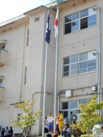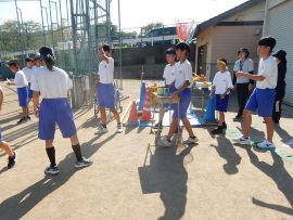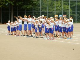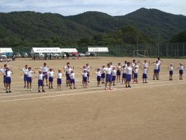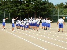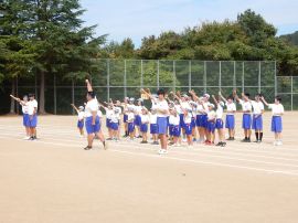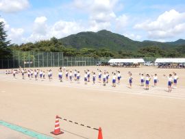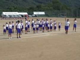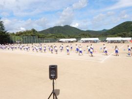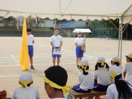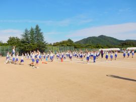 続いて、三和アップ体操では、保健体育委員会が中心となって全校児童生徒で体操に取り組む姿を披露することができました。