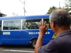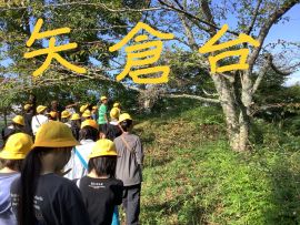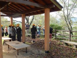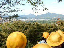 10月8日(水)に、6年生が校外学習に出かけました。今回の学習の目標は、「福知山の発展に尽くした明智光秀の功績や歴史の様子を知り、地域に住む一人として、地域を大切にする気持ちを育む。」です。訪問先は、猪崎城跡、福知山城、蛇ヶ端御藪(明智藪)、金刀毘羅神社、御霊神社でした。