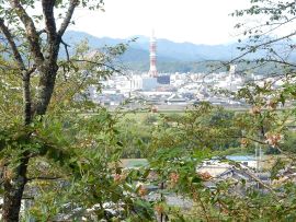 山城は、領国への侵入者をいち早く発見するために高い場所にあります。よって、見晴らしがいい!猪崎城も例に漏れず、福知山市内を一望できるほどの見晴らしでした。此岸、対岸の山々には、塩見氏の城が点在していたとのことで、改めて戦国の世は、平素から戦闘に備えていたのだいうことが分かりました。