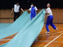 三和学園ニュース10月20日(月)の放課後に、7~9年生が体育館を文化祭仕様にしました。シートを敷き、暗幕を張り、椅子を運んで並べ、合唱台を組み立て、演台を運び、スクリーンを釣り上げ、舞台用照明を設置し…という多くの作業をテキパキと行いました。