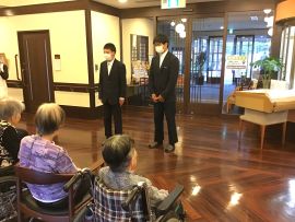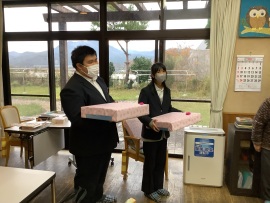 11月5日(水)放課後に、文化祭でお渡しできなかった各施設へ生徒会役員が伺い「まごころ贈呈」を行いました。お時間を作っていただき、ありがとうございました。