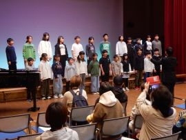 ステージ発表では、7~9年生が合唱「My Own Road -僕が創る明日-」、5・6年生が合唱「マイバラード」、1~4年生が合唱「たいようのサンバ」を発表しました。子どもたちは、多くの観客を前に緊張しながらも、堂々と歌うことができました。地域の方から、「子どもたちの発表、とても良かったです。」というお言葉を頂きました。ありがとうございます。