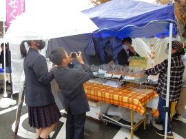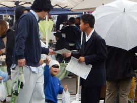 発表が終わると、1~6年生は、お客としてフェスティバルを楽しんだり展示鑑賞をしたりしました。7~9年生は、模擬店のボランティアとして、呼び込みや商品説明、代金を受け取り商品を渡すまでの一連をお手伝いしました。