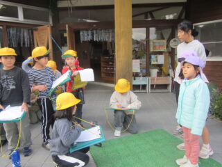 2学期の町探検は子どもたちが行きたいと思ったところに行きます。第一弾はこども園に行き、インタビューしました。