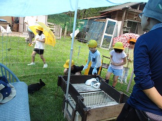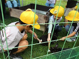 子どもたちからは、「ウサギがかわいかった!」や「餌をあげれてうれしかった」など、動物に関心をもって観察をしていました。