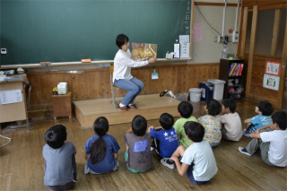 動物たちの図書館が描かれたページでは、「わぁー!」「すごーい!」と歓声が上がりました。おはなしの世界に引き込まれて聞いていました。