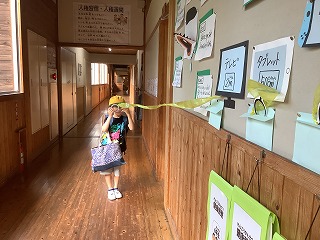 メディアとの距離の目安(2m)の掲示を体験した子どもたちからは「こんなに離れないとあかんの!?」と驚きの声があがっていました。