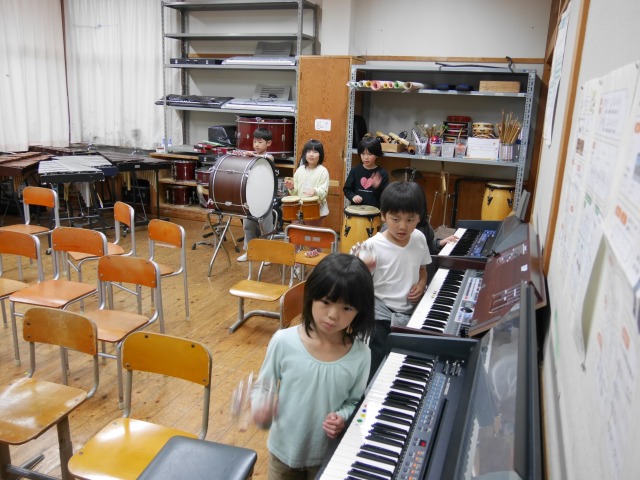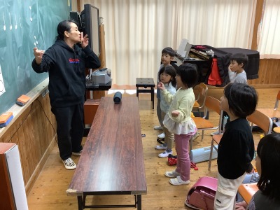 手や足などの体を使ってリズムをとる練習から始まり、最後は打楽器などもあわせて、いろいろな楽器を使って素敵なアンサンブルに仕上がりました♪
