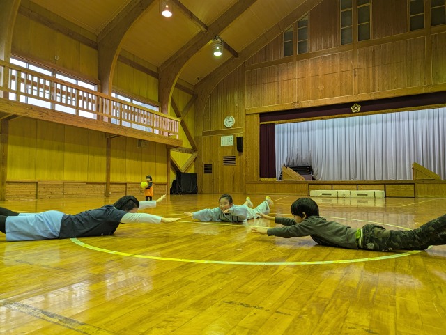 最初は参加を希望していなかった児童も、体育館に遊びに来たことをきっかけに、楽しそうに体を動かすみんなに引き込まれ、最後はみんなで一緒にサーキット遊びをしました。
