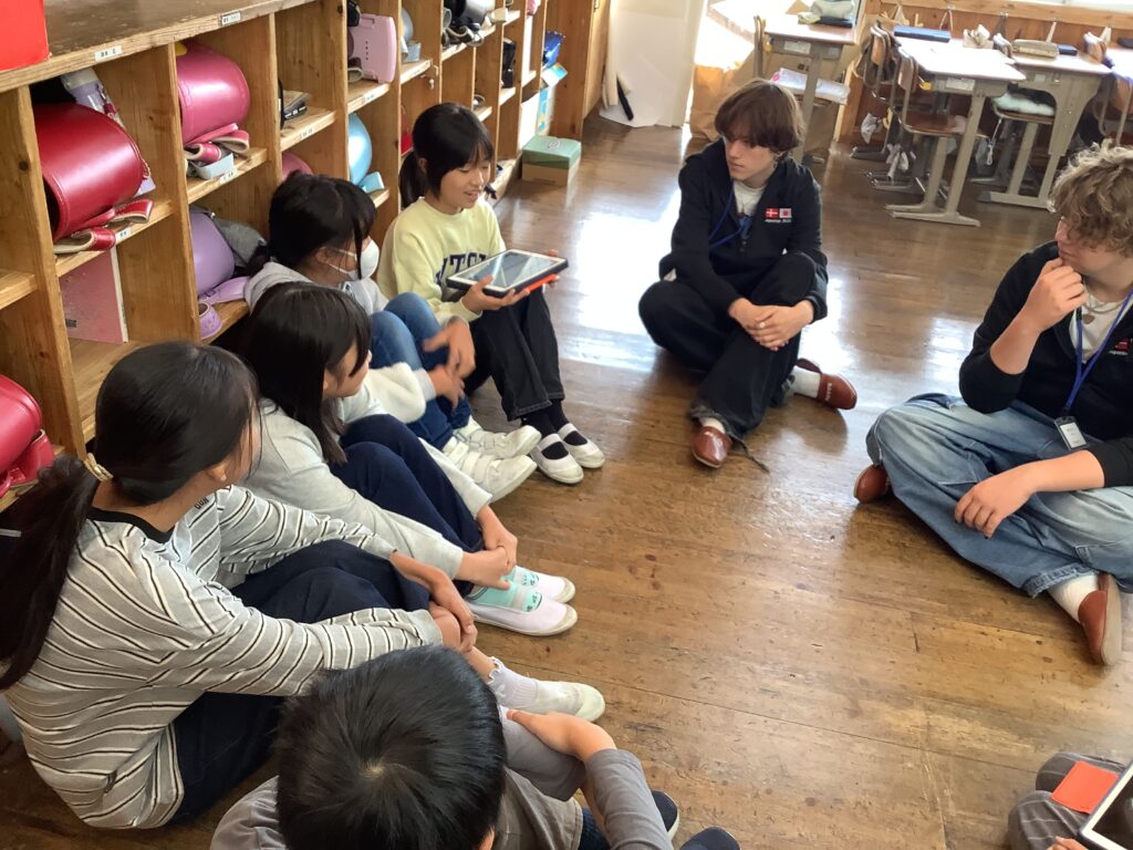 昨日、デンマークより10名の10年生が美山小学校に来てくれました。10年生は、日本でいうと中学3年生〜高校1年生にあたるようで、小学生にとってはお兄さんお姉さんです。今日は、そんな人達と一緒に遊び、楽しい時間を過ごしました。