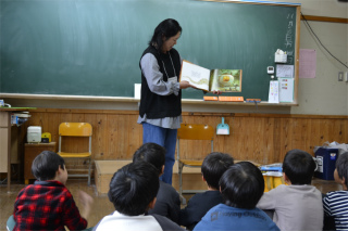 始まる前はにぎやかにしていた子どもたちですが、きちんと静かに聞いてくれて、おはなしの内容にもたくさん反応してくれていました。