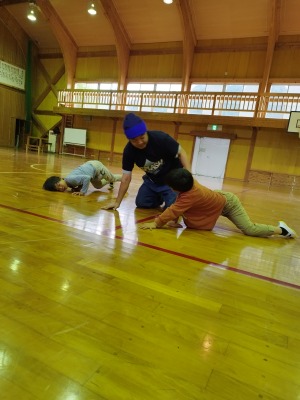 集まったのは「ブレイクダンスって何?面白そう!」という低学年のこどもたち。音楽をかけながら、基礎からゆっくりじっくり教わっていました。講師の先生からは「筋がイイね!」と褒められる場面も♪