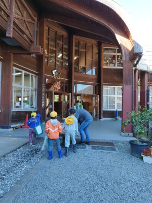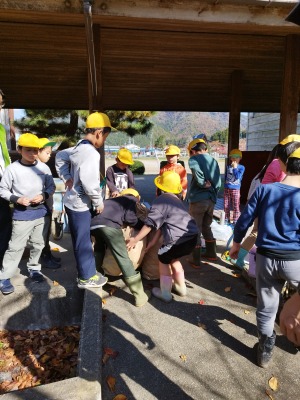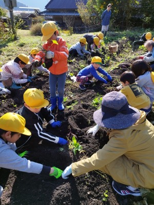 まずは、農業委員の皆さんに掘り方の説明をしていただきました。真剣に聞く子どもたち。