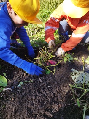 その後も、「畑にお芋が残っていないか?!」と時間ギリギリ、最後の最後まで土を掘り返して確認していた2年生です^^
