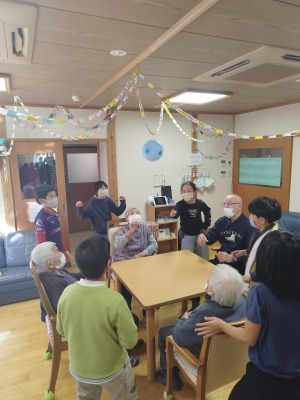 途中、オンラインで、教室とこぶしの里さんを中継で結び、大いに盛り上がりました。