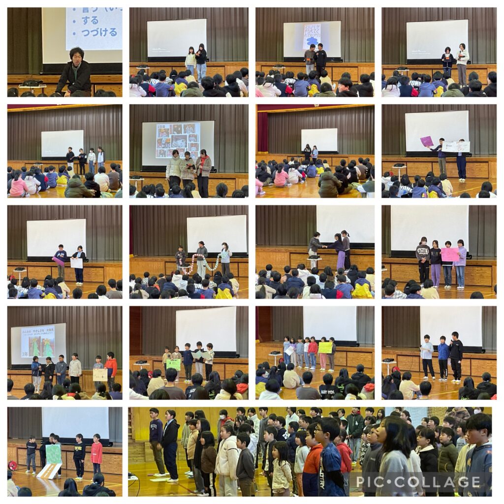 人権まとめ集会 美山っ子日記 Twitter Facebook はてブ Pocket LINE コピー 2025.12.19 3時間目に人権旬間のまとめ集会を行いました。人権旬間の期間に各学年で取り組んだこと、委員会で取り組んだことを発表しました。それぞれの学年での取り組みが一過性のものではなく、これからも意識しながら生活していきたいですね。 Post Views: 4