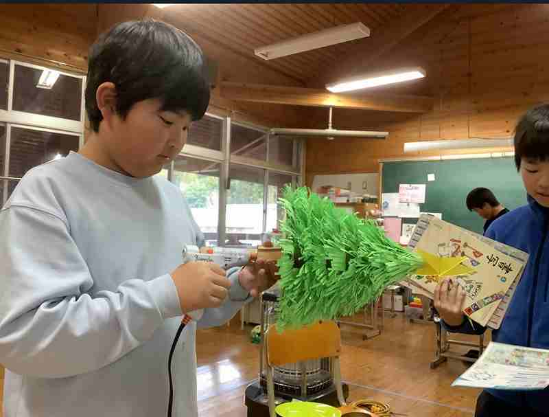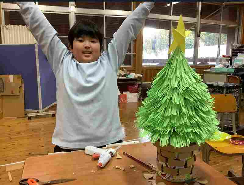 美山っ子日記 こだま2組では、クリスマスに向けてツリーの製作を行いました。