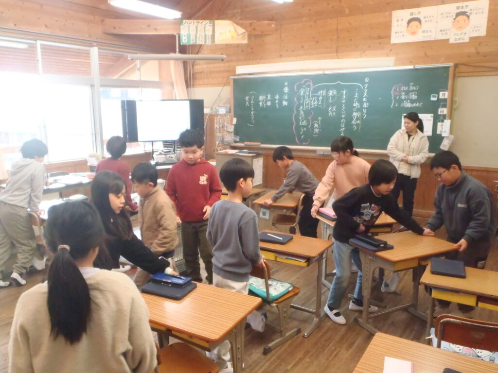 その後、各学級では、冬休みの思い出を話したり、3学期の目標を決めたり、席替えをしたり、係活動の内容を相談したりしました。