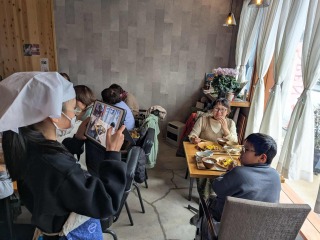 出来上がったお料理やスイーツは、ホール担当の子どもたちがお客様に運びます。