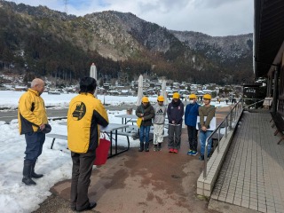 これまでガイドの指導をお世話になった、みやまDMO芳川さん、かやぶき民俗資料館館長中野さんにお客様役で参加していただきました。