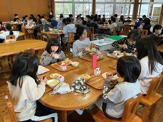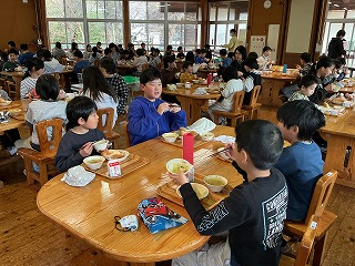 美山っ子日記今日の給食はなかよし班で食べました。