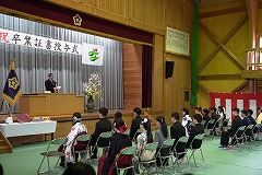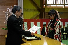 本日、20名の卒業生が本校を巣立ちました。一人一人が卒業証書をしっかりと受け取り、在校生からの送辞に対して、卒業生代表が感謝の気持ちと未来への決意を込めて答辞を述べ、会場は静かな感動に包まれました。