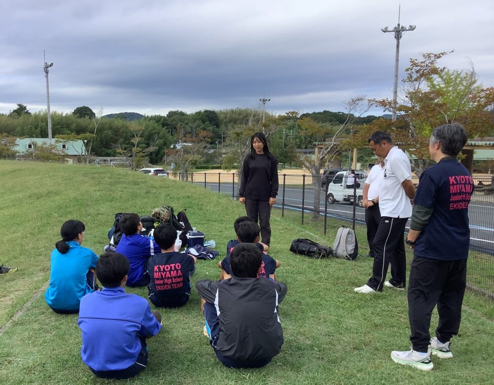 10月11日(土)、口丹波中学校総合体育大会 駅伝競走の部に参加しました。夏休みから女子2人、男子6人で練習を重ね、夏休みは朝早くから、二学期は部活動終了後から練習に励んできました。本校からは、男子1チームが出場し、6人全員がこれまでの成果を発揮し、もてる力の全てを出しきってタスキをつなぎました。チームが一丸となって走った結果、全体8位と大健闘しました。3年生を中心に良い活動をすることができました。