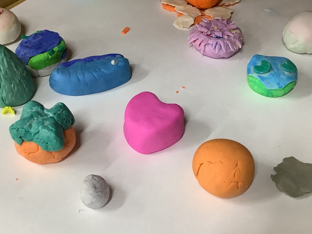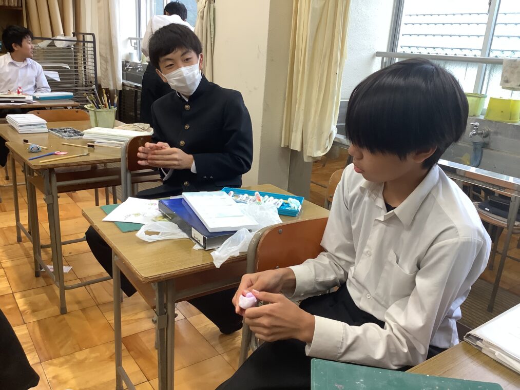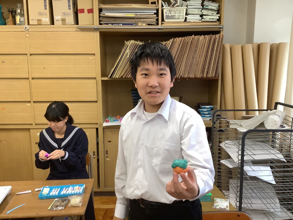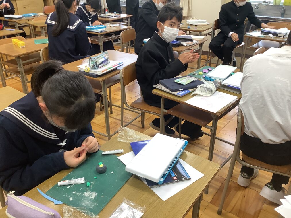 2年生の美術では、「季節感のある暮らし」という単元で、粘土を使った和菓子作りに取り組みました。