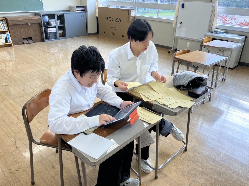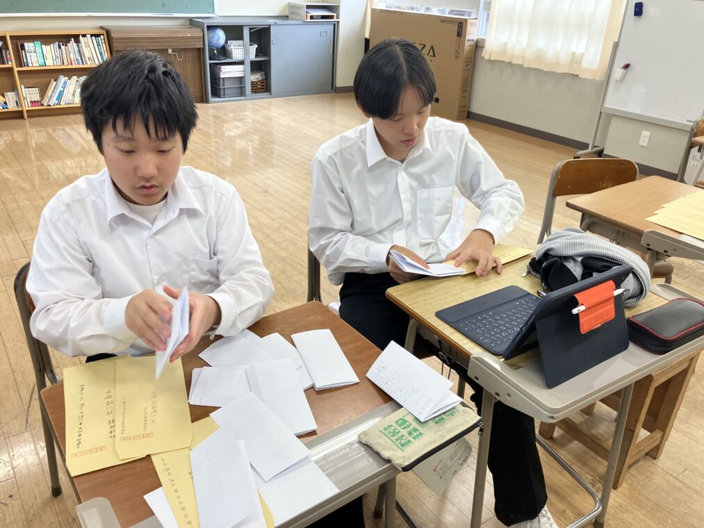 また生徒2名が封入作業や切手貼りまで手伝ってくれました。