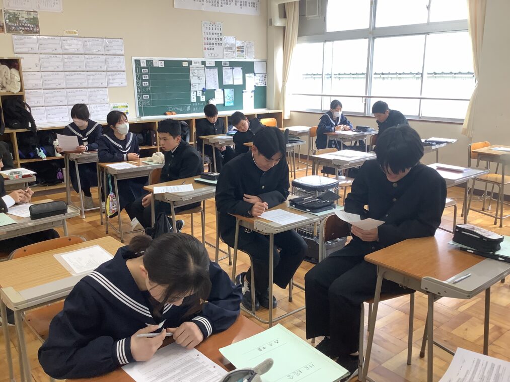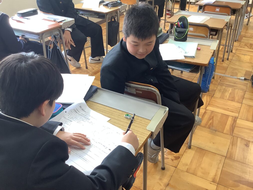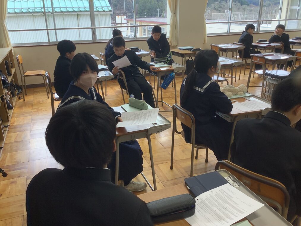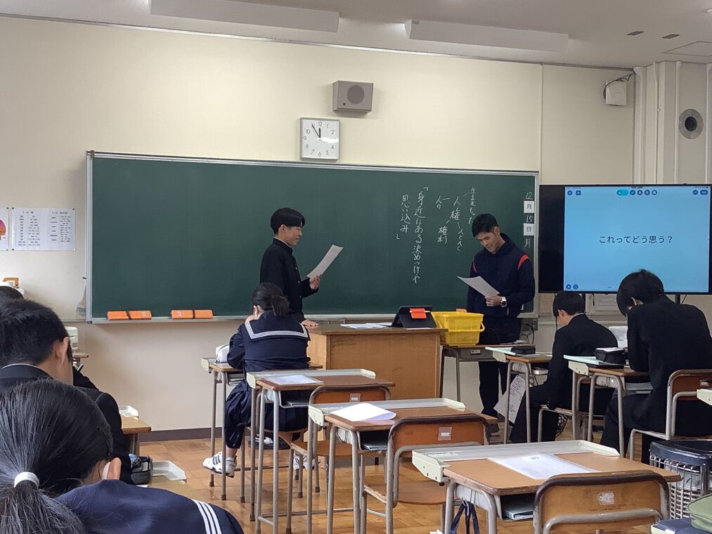 12月15日(月)に、人権学習を行いました。身の周りにある決めつけや思い込み(固定観念)が偏見や差別へと発展してしまうことを、担任とのロールプレイや話し合い活動などを通して理解することができました。1年生の感想には「人に対して決めつけるような発言はやめたい」や「偏見を持って相手に接することはいけないことだ」など身の周りにある人権について学びを深めることができました。