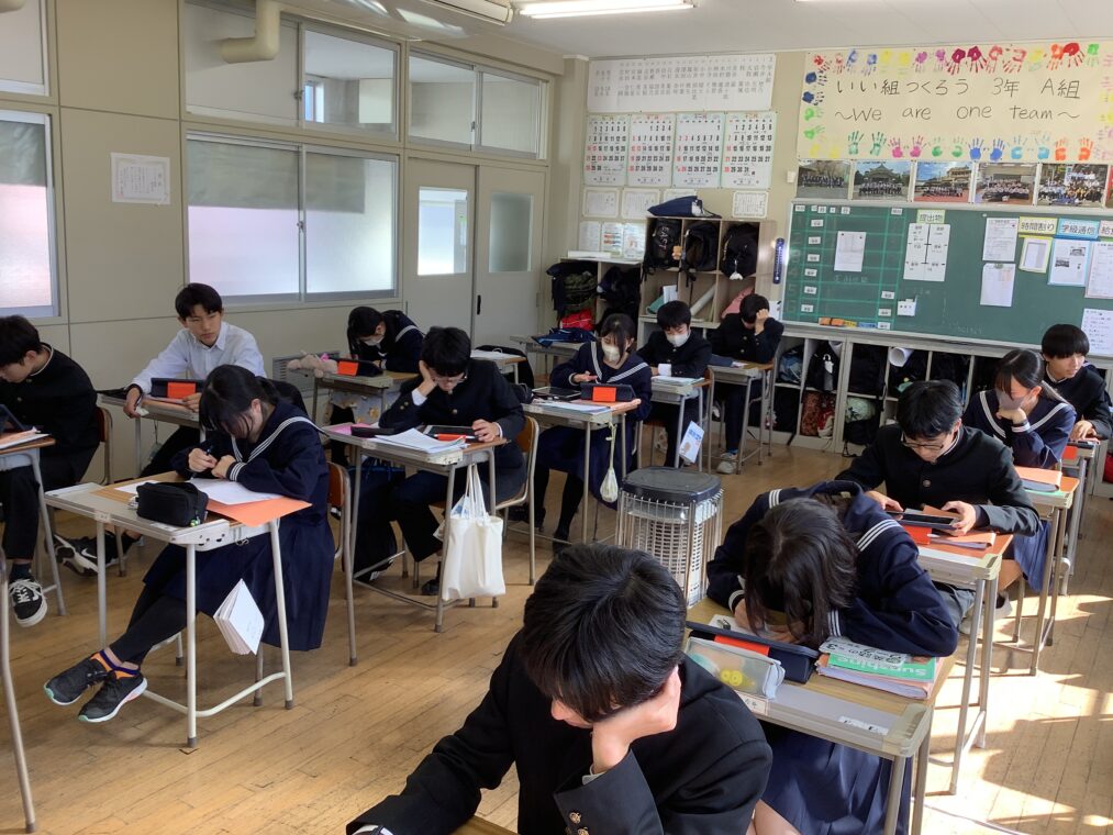 3年生は英語の授業で、学校の魅力を海外に伝えるためのホームページ用の文章作りに取り組みました。美山中学校ならでは行事を紹介し、相手と目的を意識して分かりやすい文になるように心がけました。自分の感想をいれてみたり呼びかけの言葉を入れてみたり、それぞれの工夫が見られました。