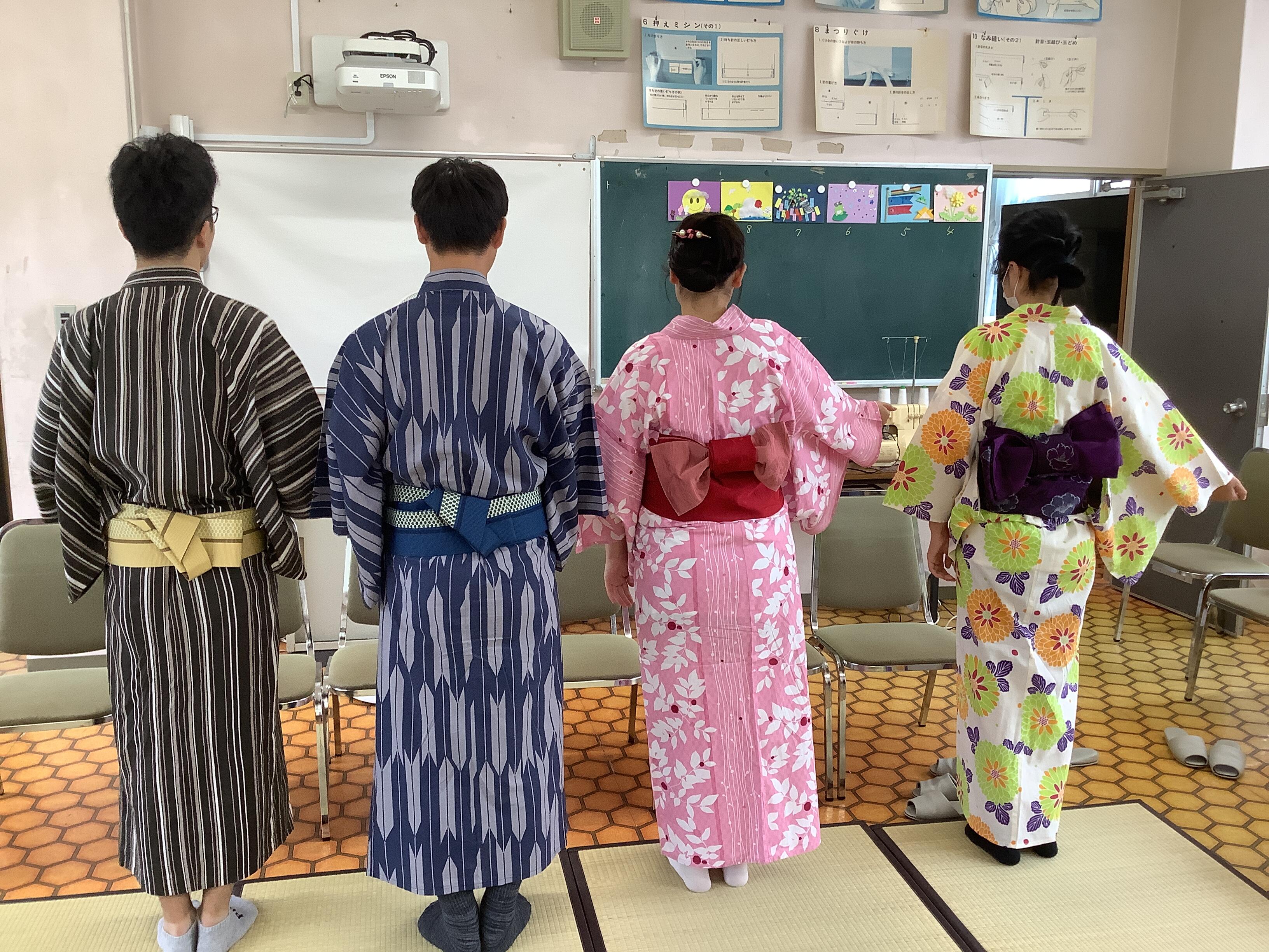 着付け体験を行いました! 10月20日(月)に、京都きもの学院講師 市村知子様、市村ミノリ様を講師に迎え、着付け体験授業を行いました。目標は、製作した浴衣を自分で着用し、ファッションショーに出演することです。紐や帯の結び方や、浴衣のたたみ方まで丁寧に教えていただきました。 前の記事