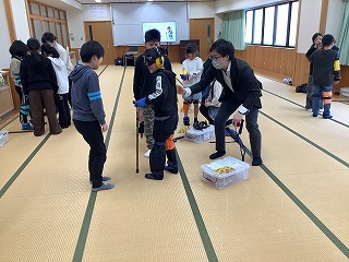 学校の様子3年生は、総合的な学習の時間「ふるさとみやづ学」の一環として、高齢者体験の学習を行いました。児童は、ゴーグルや重りなどを身に付け、視野や動きに制限がある状態で日常生活の一場面を体験しました。体験を通して、高齢者の方々が生活の中で感じている不便さや困難さに気付くとともに、生き方や考えに触れ、高齢者を思いやり、尊重する心を育むことができました。