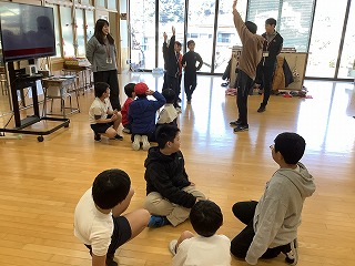 リフレッシュタイムに、教員主催の遊び「つながリフレ」を実施しました。この日は、お題の物を片仮名を使わずに説明し、みんなで当てるゲームに挑戦しました。遊びを通してさまざまな友達と関わり、楽しみながらつながりを深める時間となりました。